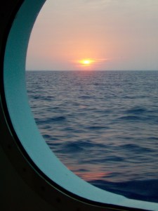 I was one of the few unaffected and had work to do—an article on Burning Man due for Trailer Life magazine. I found an empty bar on the top floor of the ship but my laptop kept sliding off the table what with all the pitching and yawing. (Cruise ship tip: when seas are high, climb down to the level nearest the hull, where it’s calmer.) The dining room was sparsely populated with wan-looking, uncommunicative passengers. The ill-conceived cocktail of the day was banana liqueur and coconut rum—a little warm ginger ale might have been a bigger seller.