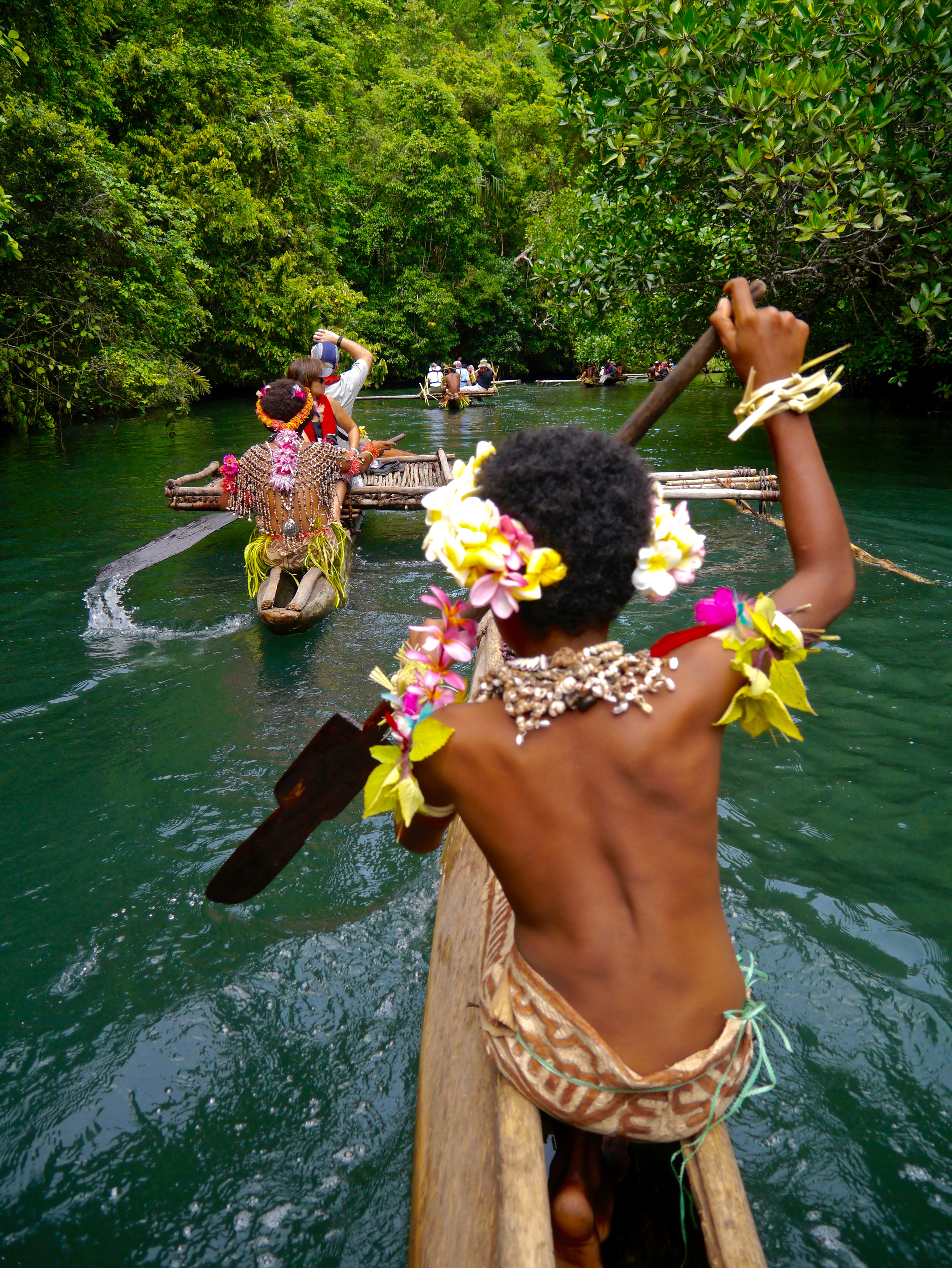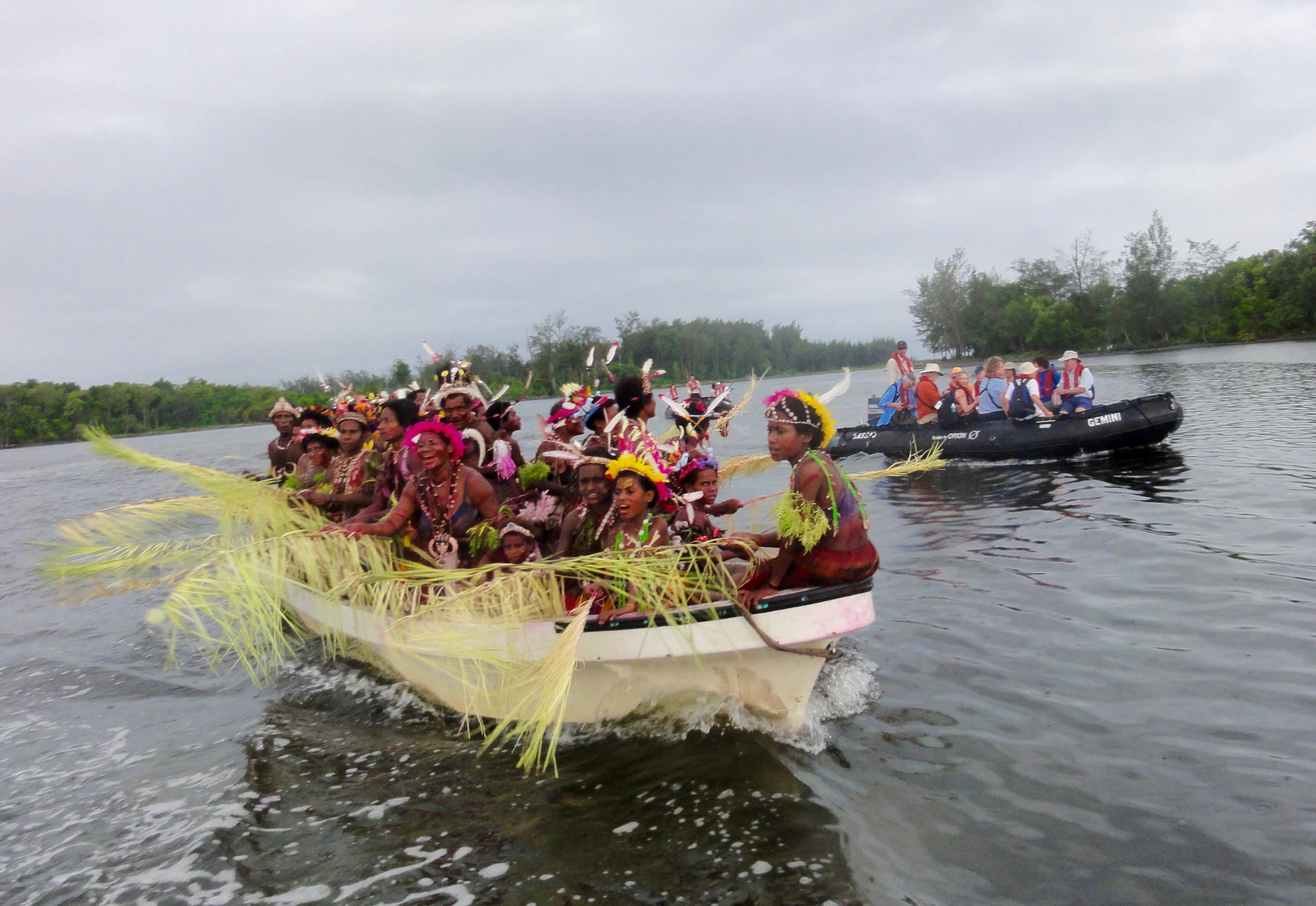 The intimate Orion (90 passengers, 75 crew) came equipped with kayaks, Zodiac landing craft (many of our ports were “wet landings”), and diving and snorkeling gear. The professional expedition staff included a marine biologist, acclaimed wildlife photographer Sue Flood, a field biologist, meteorologist Jay Anderson, planetary scientist and former NASA astronaut Thomas Jones, and a cultural anthropologist—an Aussie who married into a PNG village and actually became a chief, who knew everyone and all the local customs.