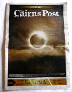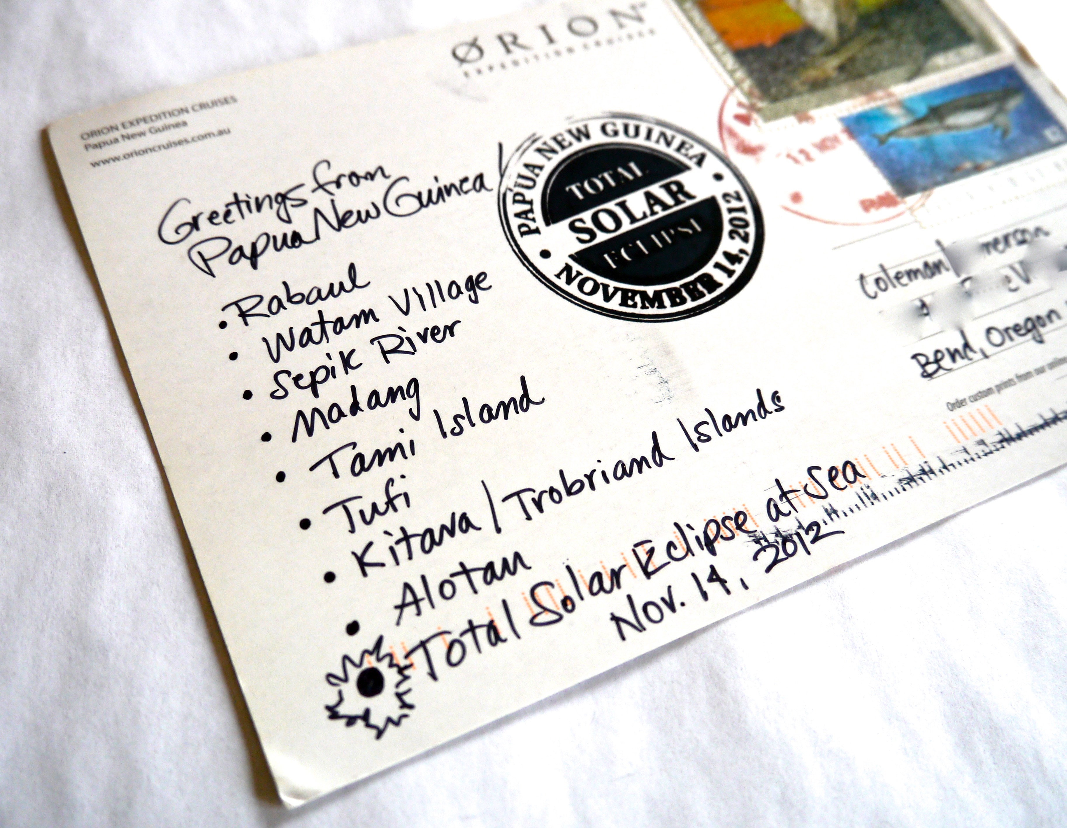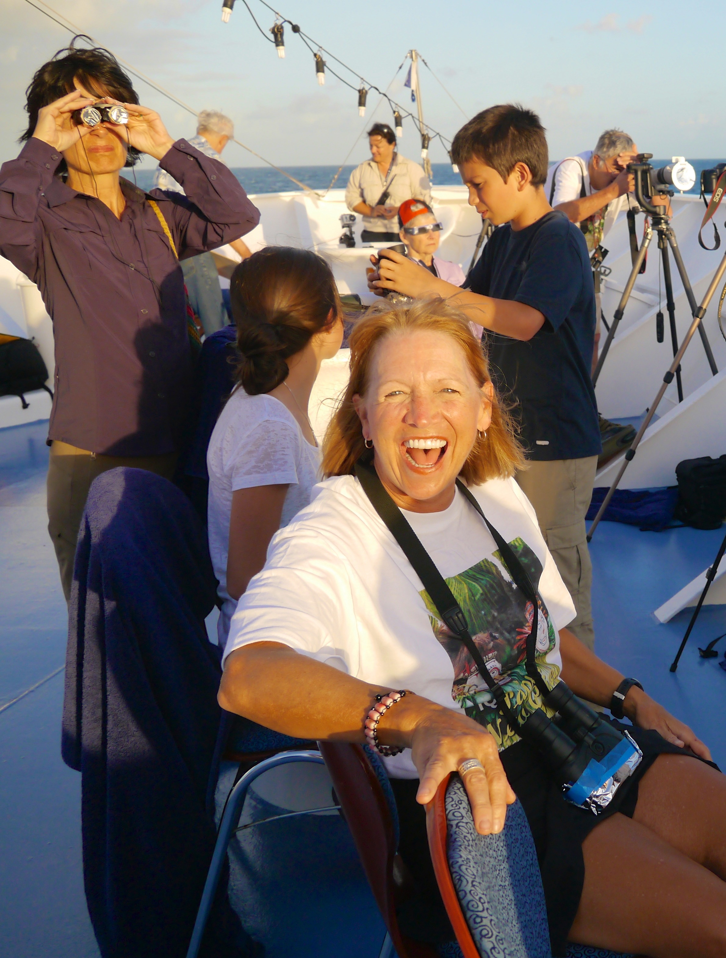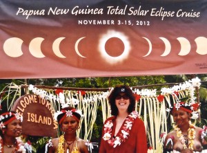 It was a wedding gift of sorts. Two months after we married, Ralph sent me on my own to join another TravelQuest eclipse tour, this time on the glamorous expedition ship Orion. The dream itinerary: a private charter flight from Cairns Australia to Papua New Guinea to join the Orion for nine days—a ship small enough to carry passengers to several remote villages—and a grand finale, totality at the Great Barrier Reef.