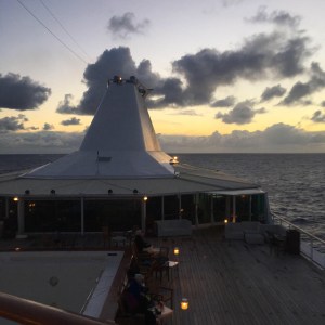 Feinberg continued his dignified phenomenon announcements (“this is when you should be able to see shadowbands”, etc.) from his position on the bridge with the captain. Both furiously calculated possibilities, and the Paul Gauguin was turned and turned and repositioned again and again and again to try to find a hole in the dark grey clouds, to no avail. We were skunked.