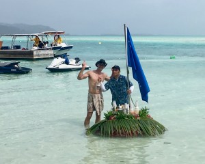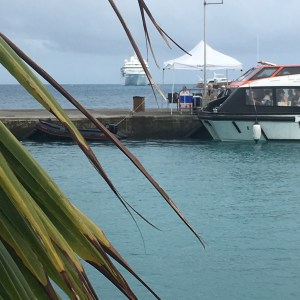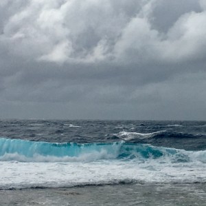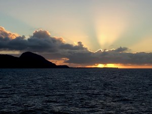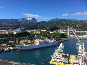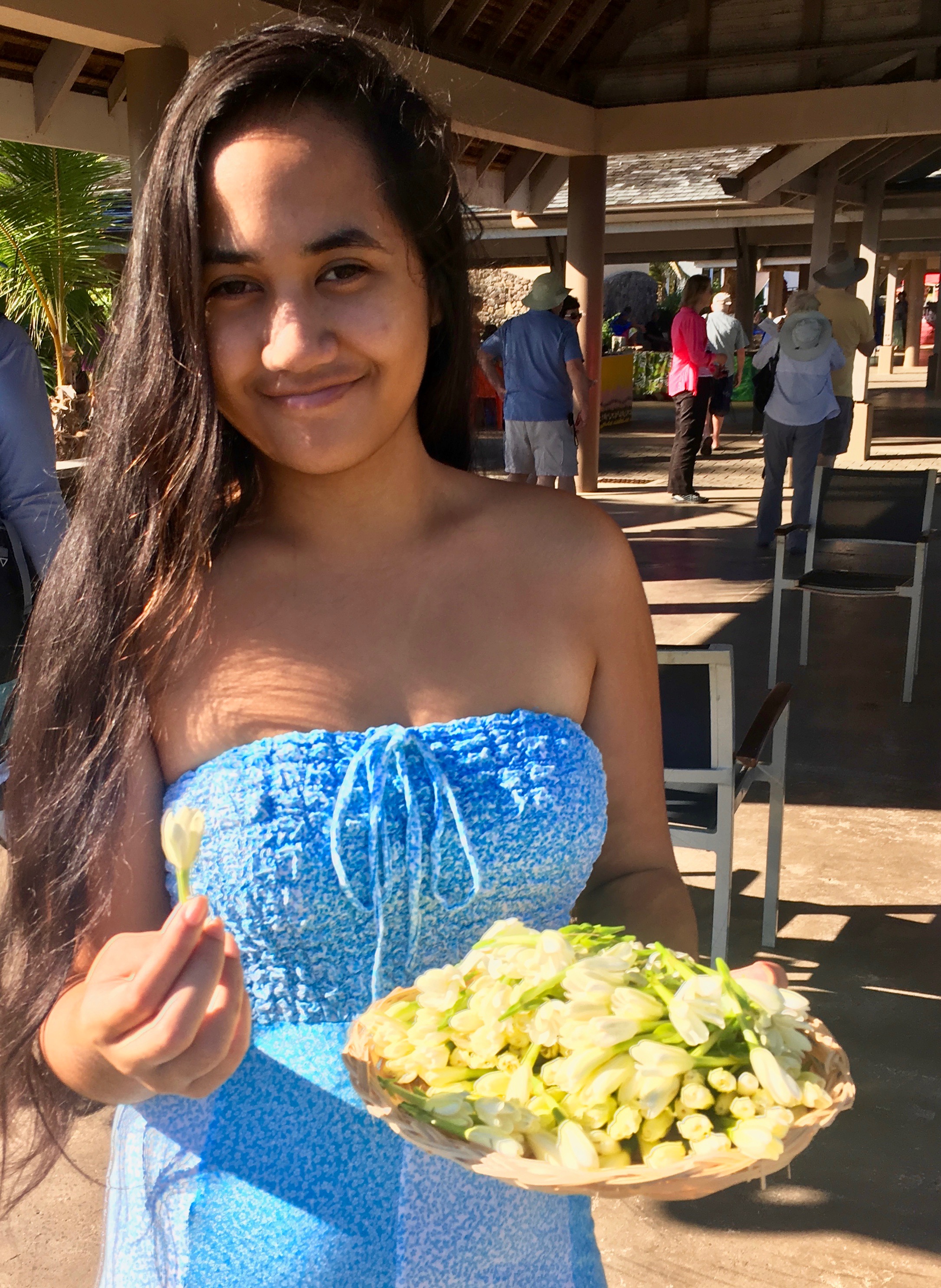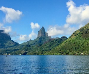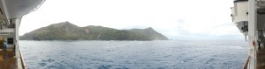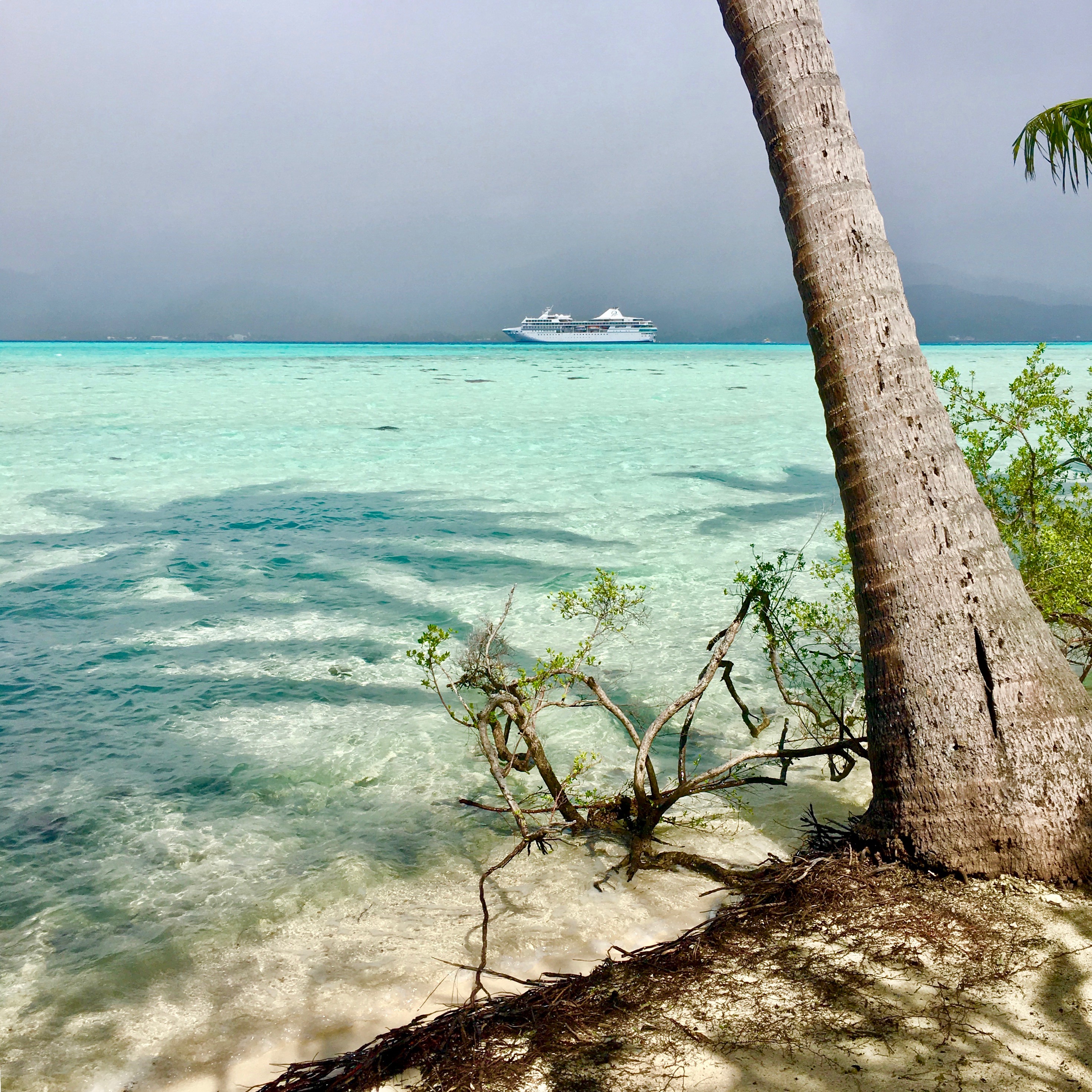 The morning dawned beautifully over the Paul Gauguin, with a blue sky and a bright yellow sun burning through the large holes in non-threatening puffy clouds.