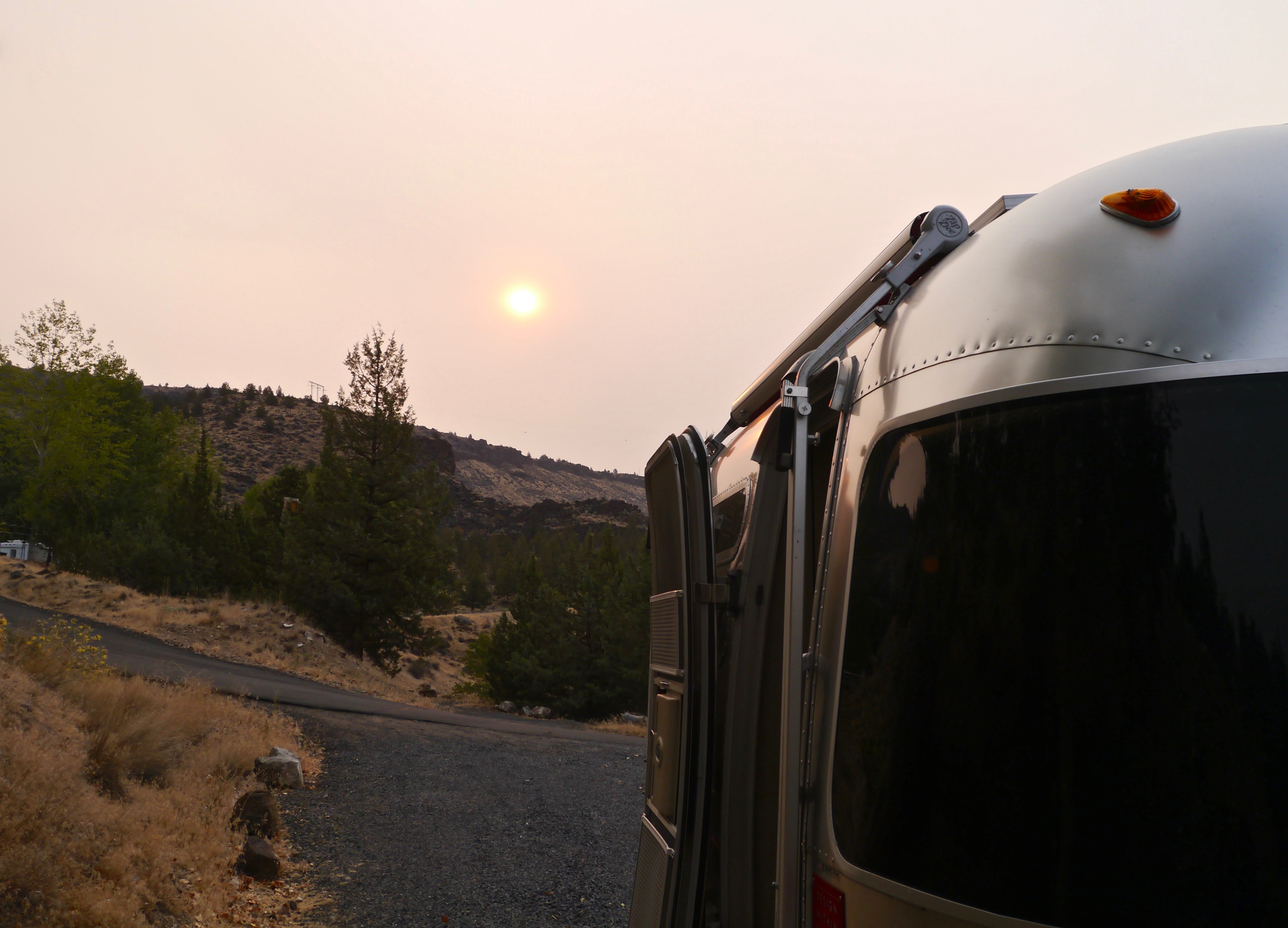 There’s a solid wall of clouds outside my Airstream window at 7:30am. By eight the sky is still grey, but growing patchy, and lumpy. Something about the smell in the air tells me it will all burn off and we’ll have a bluebird sky before long.