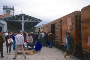 The train was beyond rustic. Eight hours of squeaking metal, with hard seats in cold and cramped compartments. To get to the dining car (for yet another meal of pollo and fries) we had to take a giant step between the cars, the rushing tracks visible in the yawning, swaying crack below.